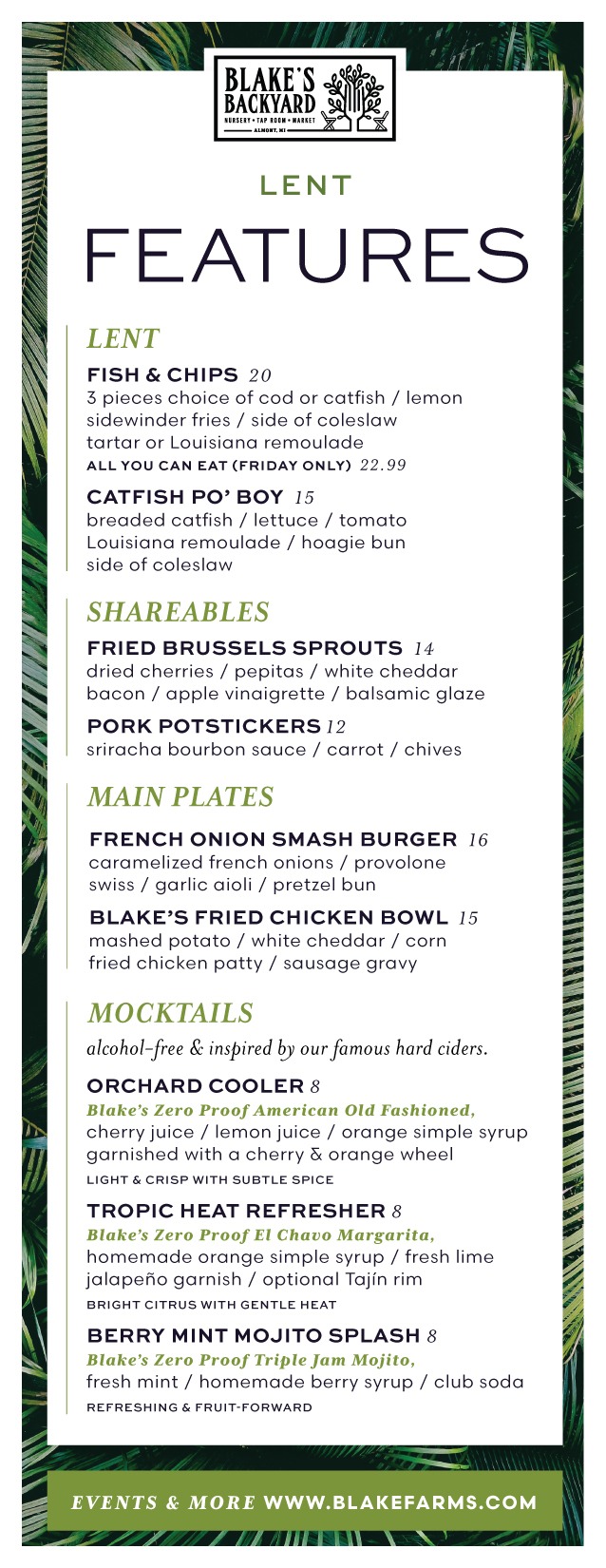 Lent is here, and our kitchen is serving up flavorful, satisfying dishes perfect for the season. Whether you’re observing meatless Fridays or simply craving something fresh and comforting, we’ve crafted a tasty lineup for your enjoyment.