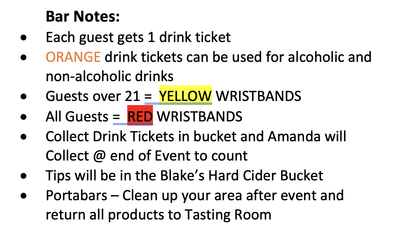 Blake’s Beverage Co. employees: Pick up at the Tasting Room