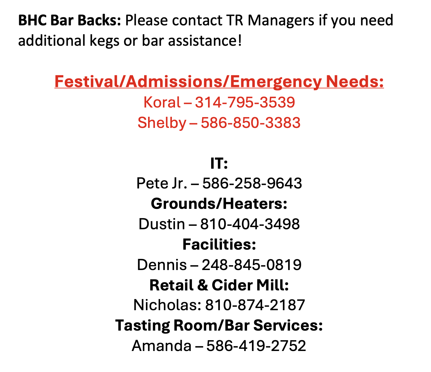 Applies to all food retail centers: (Cider Mill, Tasting Room, BBY Tasting Room)