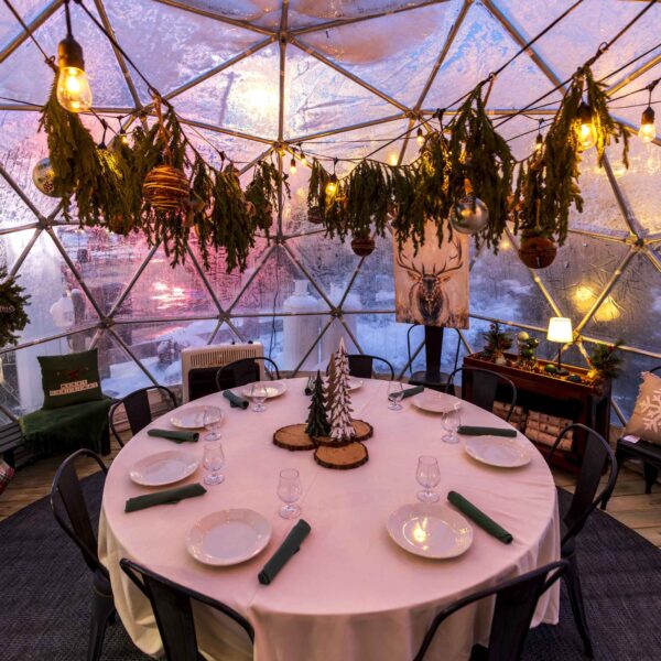 Escape the ordinary and indulge in a unique private dining experience! Nestled in our cozy igloos, you can savor delicious craft hard cider, local beers, and exquisite wines, all paired perfectly with a curated selection of lunch and dinner options. Whether it's a special celebration or a casual get-together, our igloos provide an intimate setting to enjoy great food and drinks with friends and family. Reserve your igloo today and make unforgettable memories in a winter wonderland!