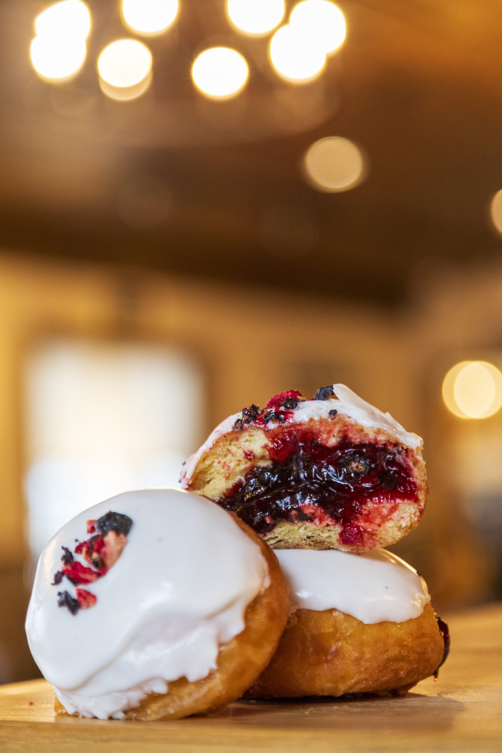 Zesty, sweet, and a little bit tangy—this paczki brings sunshine to your taste buds, with a vibrant blueberry filling wrapped in a soft, lemon-glazed shell.